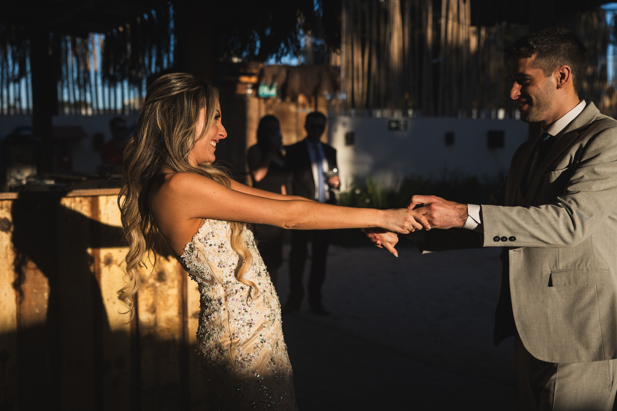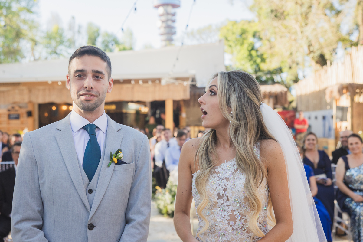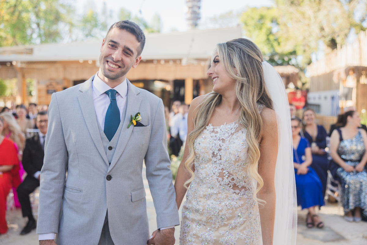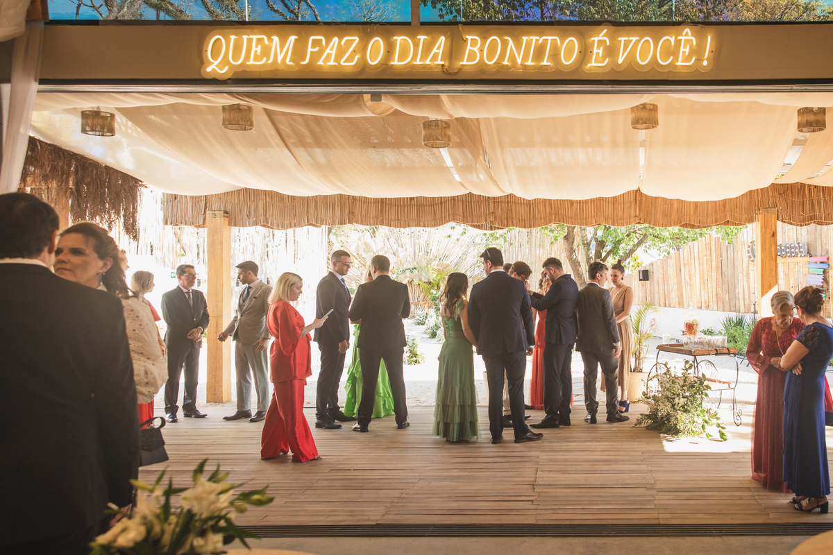 Quem é curitibano sabe o quanto a gente valoriza um dia de sol. Ainda mais se o seu casamento for em um lugar que simula praia, chão de areia e descoberto como o Dunna.