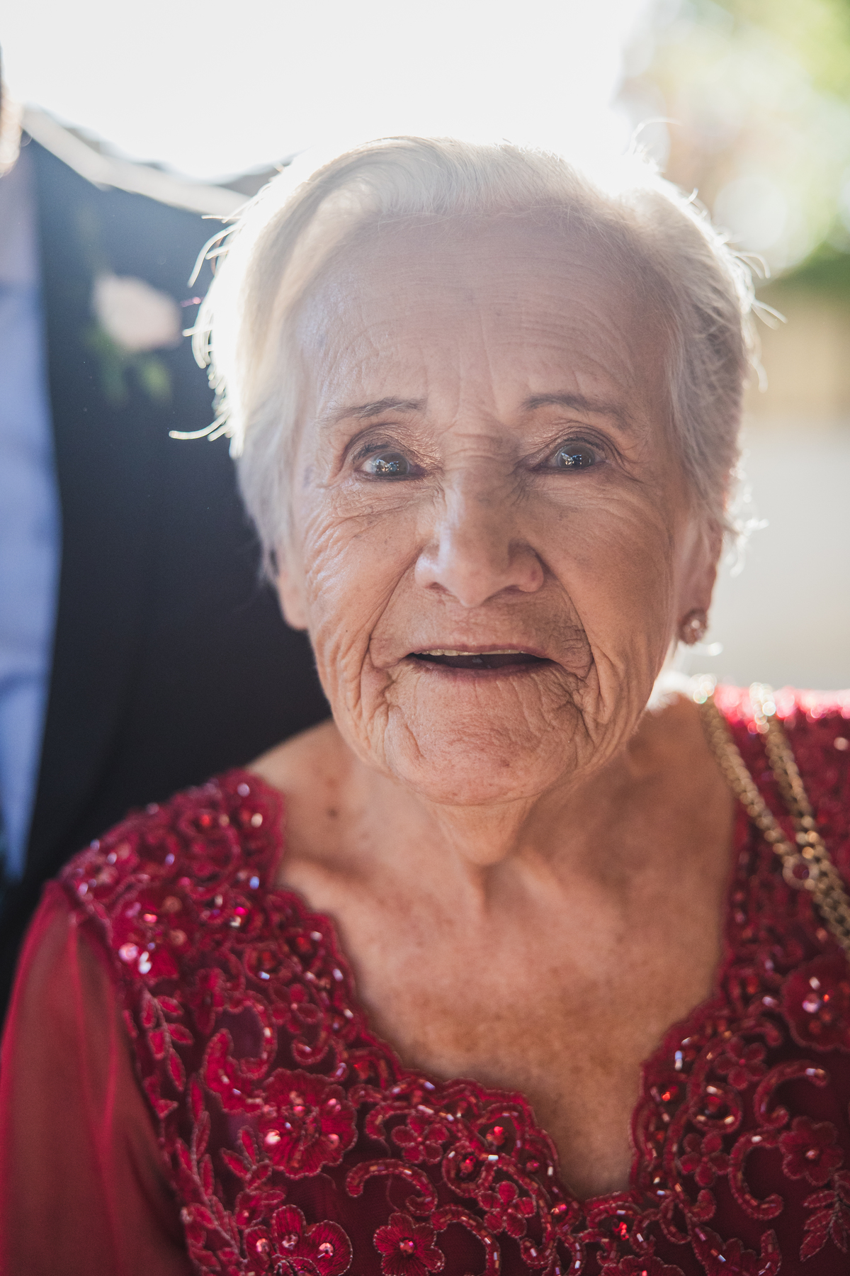 Um casal querido e emocionado, transbordando sorriso no olhar.